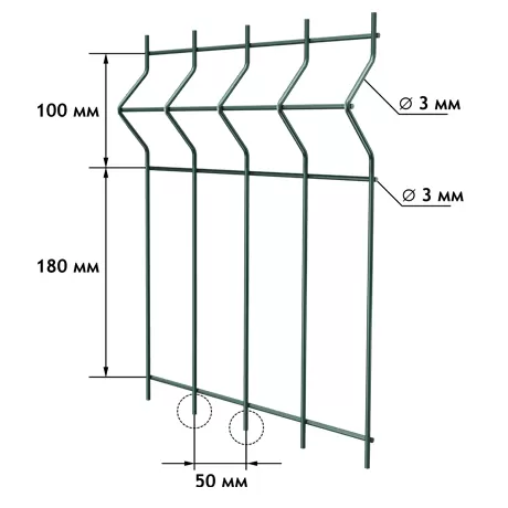 | ZINC-perimetr | 1730 | 2500 | 3,0 | 100 мм (2 изгиба) | Горячее цинкование (1 класс) | Без окраски | Временные ограждения, внутреннее зонирование |